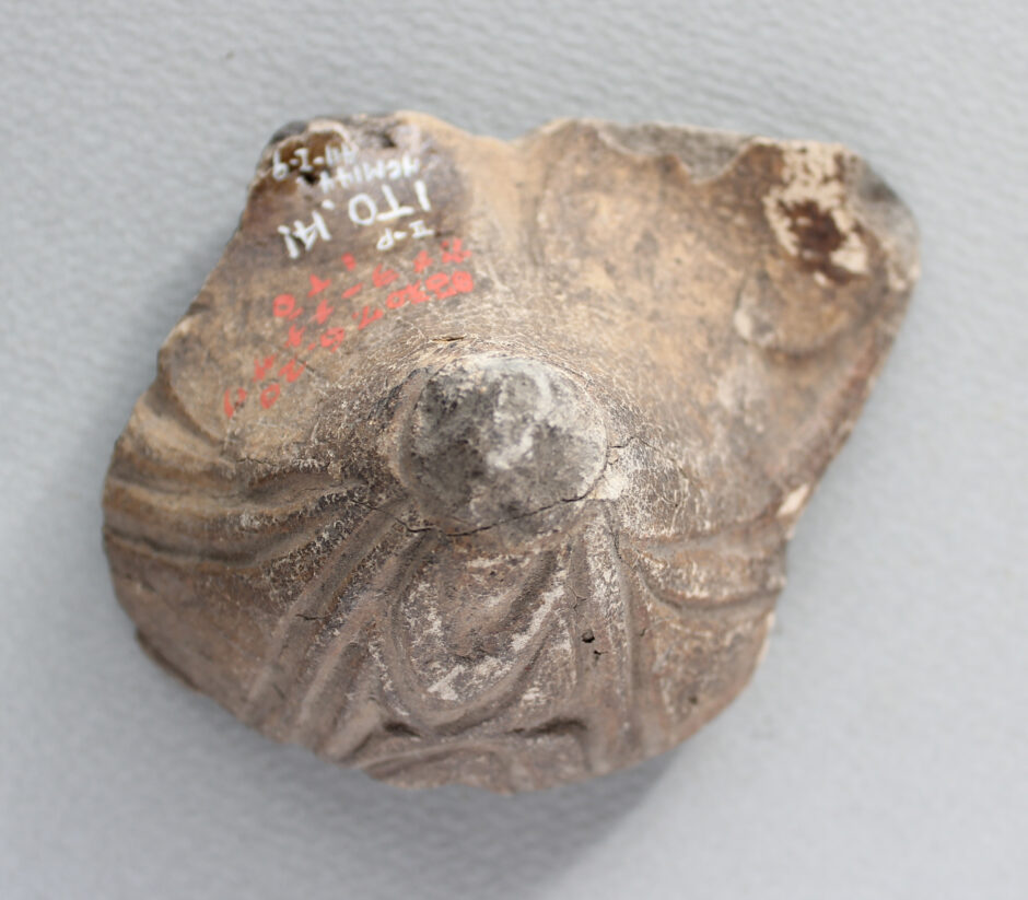 この土偶を採取したのは函館考古学会の伊藤昌吉氏。昭和6年から10年の間にまでの間の収集品で土器、石器、装身具など173点が氏のコレクションとして博物館に収蔵されています。この破片も沢山の遺物の中から残すべきものとして伝えてくれた1点でした。しかしながら資料についての記録や観察については記載がなく、残念ながら詳細は分かっていません。