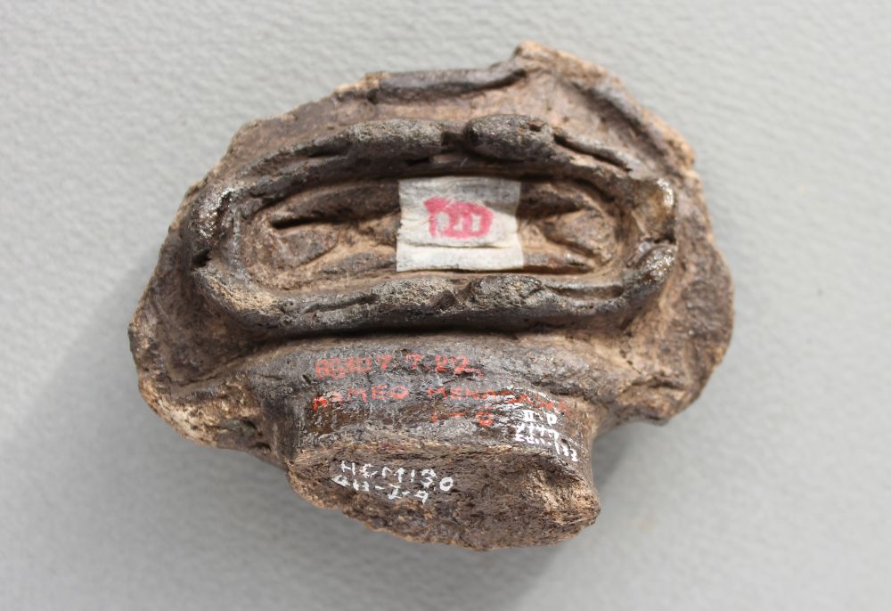 東北日本に広い分布域を持つ遮光器土偶は北海道でも出土します。北海道南部はもちろん、道央部にも広がり、地域の土偶にも形状的な影響を与えました。これは「類亀ヶ岡系」と言う名前でよばれます。道南の亀ヶ岡式土器文化期の遺跡は、函館では女名沢遺跡や大船A遺跡、日の浜遺跡、北斗市では添山遺跡、木古内町の札苅遺跡などが知られています。この土偶頭部が発見された女名沢遺跡からは手足の破片を含めると、多くはありませんが22点、21体の土偶が発見されています。